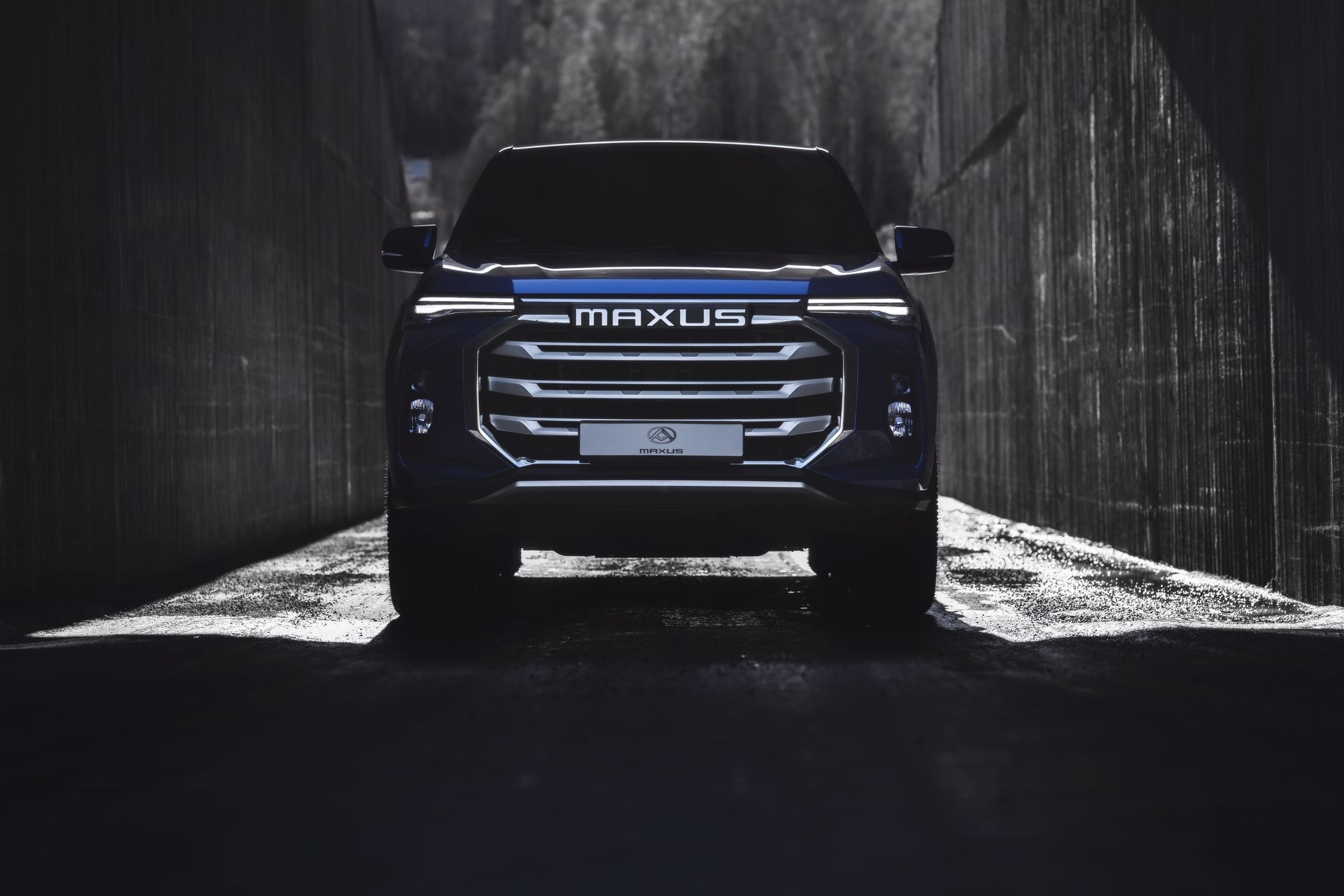 Le Maxus T90 EV allie un design séduisant à des éléments classiques. Une calandre élevée confère à la voiture une apparence agressive, captant immédiatement l'intérêt. Son caractère robuste est confirmé par les passages de roue dynamiques et les feux arrière prononcés.